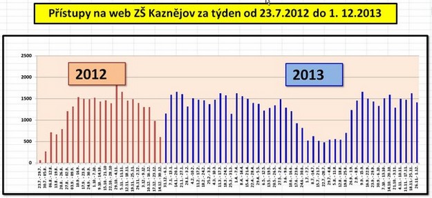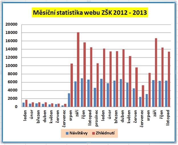 Měsíční statistika webu ZŠK 2013 - 2013 (nová grafická a obsahová podoba webu spuštěna 3. srpna 2012)