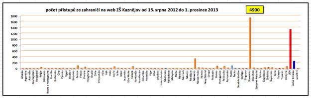 | 4900 přístupů na web ZŠ Kaznějov ze zahraníčí od 15. srpna 2012 do 2. prosince 2013 - z toho ... | |||
