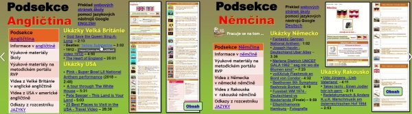Klepnutím na šipku vpravo se dostaneme na podsekce Angličtina (snímek č.14 ) a Němčina (Snímek č. 15)