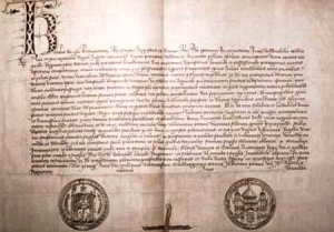 Vybrané dokumenty z naší historie 1039 - Břetislavova dekreta • 1212 - Zlatá bulla sicilská • 1348 - Zakládací listina Univerzity Karlovy • 1409 - Dekret kutnohorský • 1415 - Páni Čeští a Morawští ... • 1423 - Listy Jana Žižky - Žižkův vojenský řád • 1464 - Jiří z Poděbrad a jeho smlouva o nastolení míru v celém křesťanstvu • 1609 - Majestát Rudolfa II. na náboženské svobody • 1781 - Patent o zrušení nevolnictví • 1914 - Mým národům - vyhlášení válečného stavu se Srbskem (1. světová válka) • 1918 - Pittsburská dohoda • 1918 - Prohlášení československé samostatnosti • 1918 - 1. schůze Národního shromáždění československého 14. listopadu 1918 • 1938 - Mnichovská dohoda s dodatky a prohlášeními • 1968 - Dva tisíce slov • 1977 - Prohlášení Charty 77 |